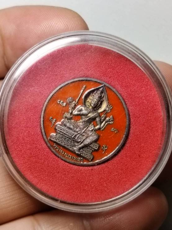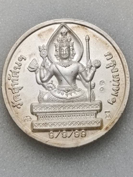 เหรียญพระพรหมเนื้อเงินลงยาสีแดง ออกวัดสุทัศน์ ตอกโค๊ตตอกหมายเลข สภาพสวยเดิมตามรูปราคาเบาๆ