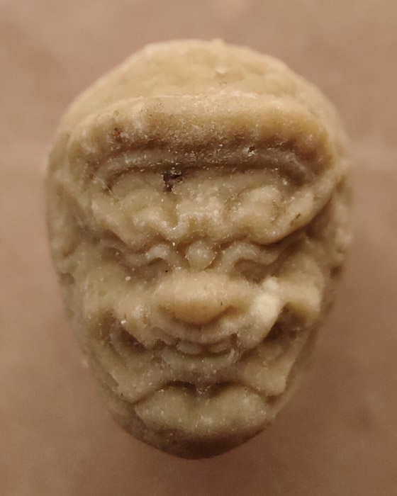 มวลสารที่หมักโขลกมี ปูนเปลือกหอย ผงอิทธิเจสายศิลปิน แป้งผัดหน้าศิลปิน ผงที่ป่นจากกระดาษข่อยโบราณคราวที่ซ่อมหัวโขนพระพิราพเก่าของหมื่นพจนาเสนาะ ( ถึก รัตนเกต) กล้วยน้ำว้า น้ำผึ้ง น้ำมันตั้งอิ้ว...หายากเพราะไม่มีใครตัดแบ่งครับ |
