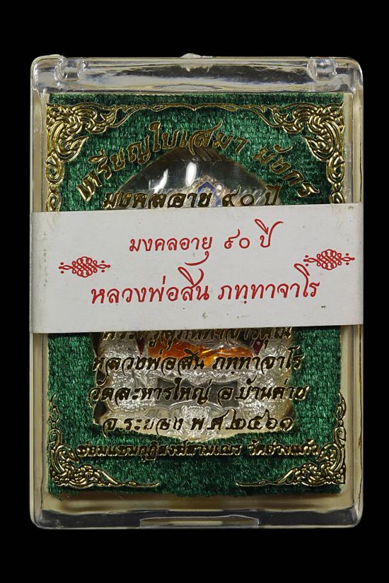 เหรียญใบเสมามังกร มงคลอายุ 90 ปี หลวงพ่อสิน เนื้อนวะหน้ากากลงยา พร้อมกล่องเดิม แดง 100 |