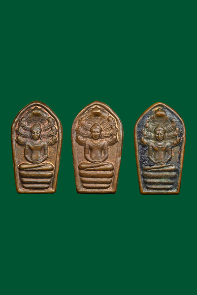 ปรกใบมะขาม รุ่นแรก หลวงปู่นนท์ วัดเหนือวน ราชบุรี 3องค์