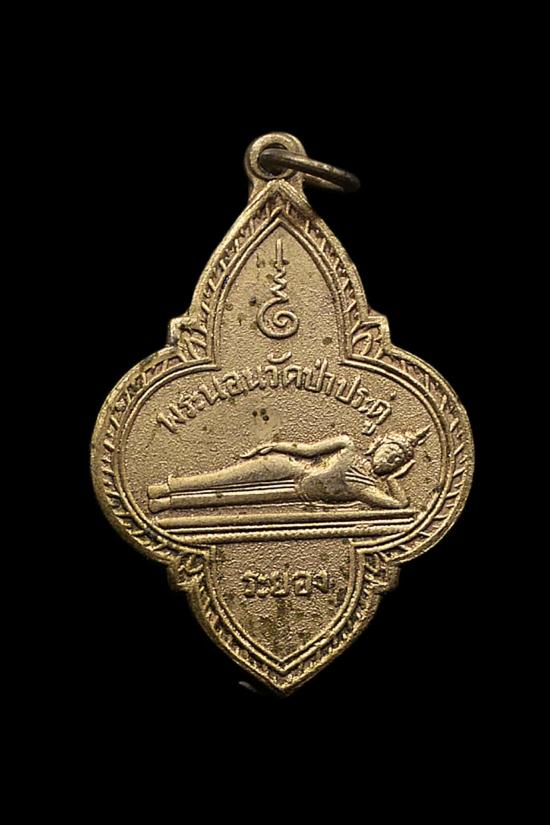 เหรียญพระนอน วัดป่าประดู่ จ.ระยอง ปี ๒๕๐๗ เนื้อทองแดงกะหลั่ยทอง