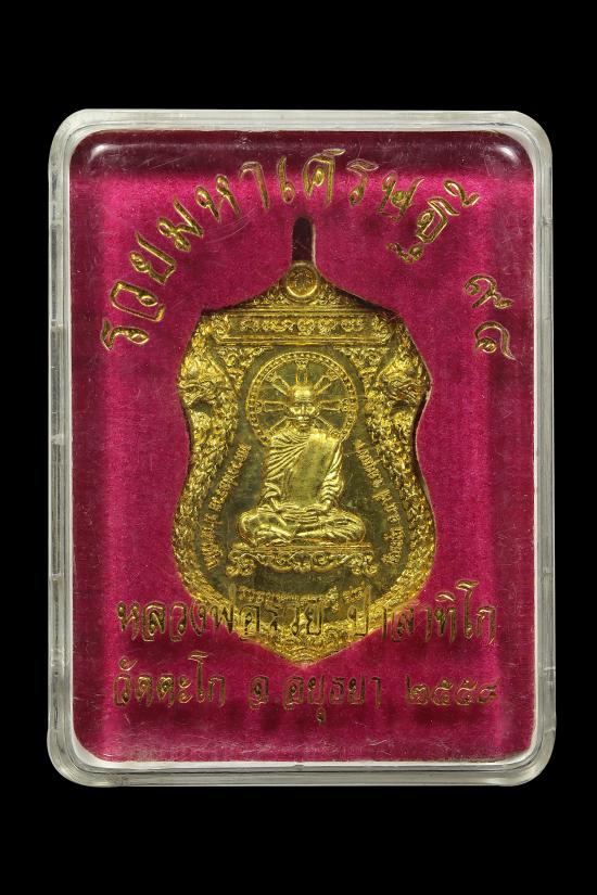 เหรียญรวยมหาเศรษฐี หลวงพ่อรวย วัดตะโก จ อยุธยา ปี2558 เนื้อทองเหลือง พร้อมกล่องเดิม |