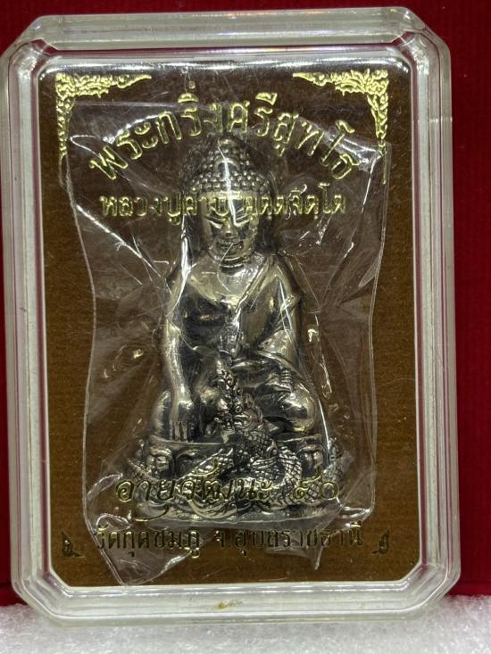เคาะเดียว พระกริ่งศรีสุทโธ รุ่นอายุวัฒนะ 90 เนื้อนวะโลหะ หลวงปู่คำบุ วัดกุดชมภู จ.อุบลราชธานี กล่องเดิม |
