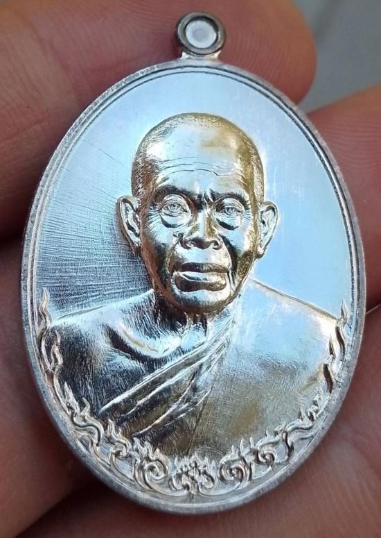 เหรียญรูปไข่ครึ่งองค์หลวงพ่อคูณ วัดบ้านไร่ รุ่นเมตตามหาบารมี ปี 2557 เนื้อเงินพร้อมกล่องเดิม