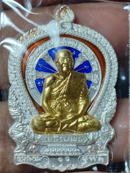เหรียญนั่งพานหลวงพ่อทอง เนื้อเงินลงยา หน้าทองคำ พร้อมกล่อง