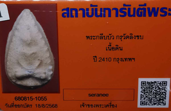พระกลีบบัว กรุวัดลิงขบ เนื้อดิน ปี2410 จ.กรุงเทพฯ + บัตรG-pra สภาพเดิมค่ะ สภาพตามรูปทุกประการค่ะ