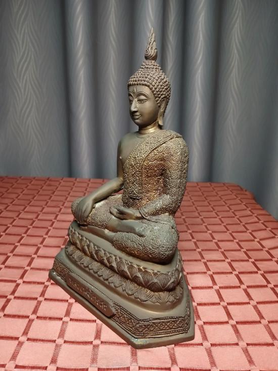 หลวงพ่อไกรสร วัดทุ่งครุ กทม หน้าตัก 5 นิ้ว ฐานหกเหลี่ยมกว้าง 7 นิ้ว ขนาดความสูง 9.5 นิ้ว เนื้อทองเหลืองรมดำ ศิลป์สวย หล่อหนา |