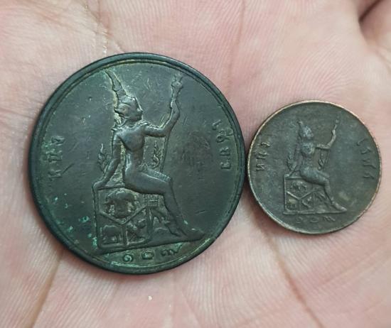 เหรียญ ร.5 รวม2เหรียญ เหรียญ หนึ่งเซี่ยว+โสฬศ ร.ศ. ๑๐๙ (พระเศียรตรงกัน) เดิมๆตามภาพครับ 100 เบาๆ |