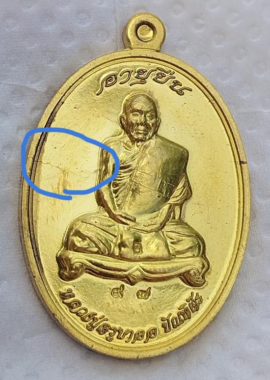 เหรียญอายุืน ครูบาออ วัดพระธาตุจอมแวะ เชียงใหม่ เนื้อฝาบาตร เลขสวย ๙๗ ราคาเบามากครับ |