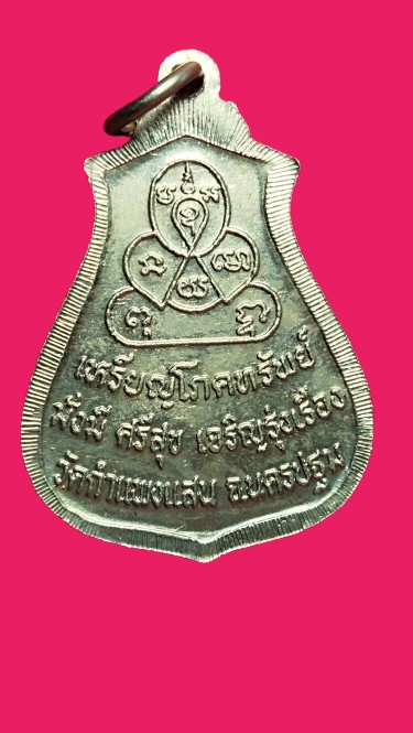 เหรียญโภคทรัพย์ หลวงปู่แผ้ว วัดกำแพงแสน จ.นครปฐม เนื้ออัลปาก้า