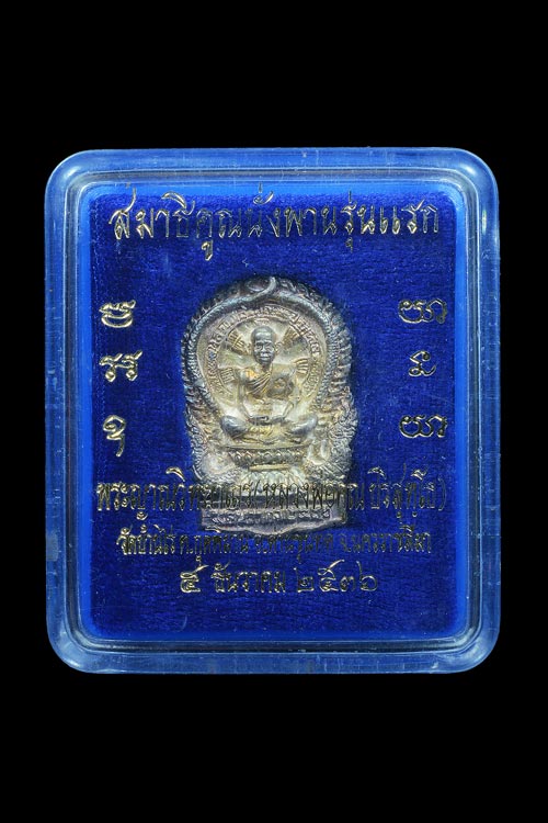เหรียญหล่อนั่งพาน รุ่น พิเศษร่วมสร้างบารมี ( เนื้อเงิน ) หมา ยเลข 1477 พ.ศ.2536 ( กล่องเดิม )