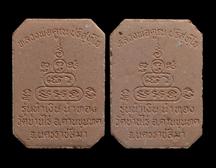 พระผงรูปเหมือนนั่งสมาธิ ( พิมพ์หลวงพ่อปาน ) รุ่น นำเงิน นำทอ ง ( เนื้อผงกระเบื้องหลังคาโบสถ์ ฝังตะกรุดทองฝาบาตร ) จัดสร้างโดย วัดใหญ่สีคิ้ว พ.ศ.2536 ( รับพระ 2 องค์ ) |