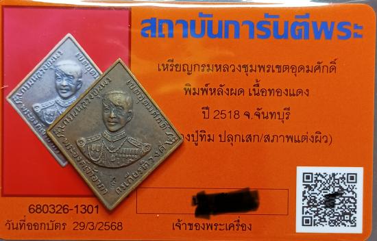 เคาะเดียวแดง....เหรียญกรมหลวงชุมพรเขตอุดมศักดิ์ พิมพ์หลังผด เนื้อทองแดง ปี2518 จ.จันทบุรี พร้อมบัตรรับรอง |