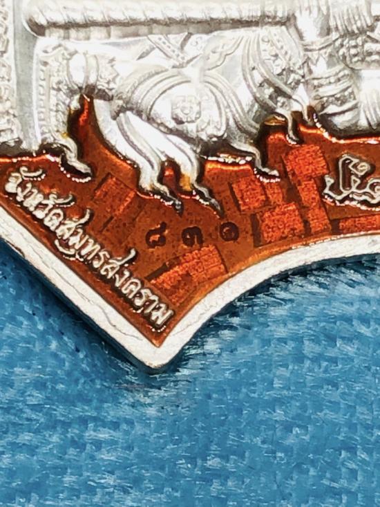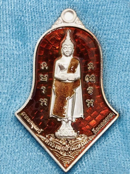 เหรียญหลวงพ่อวัดบ้านแหลม ประทับหลังท้าวเวสสุวรรณโณ พิมพ์ทรงจำปีใหญ่ เนื้อเงินลงยาแดง เลขโค๊ต 831 พร้อมกล่องเดิม |