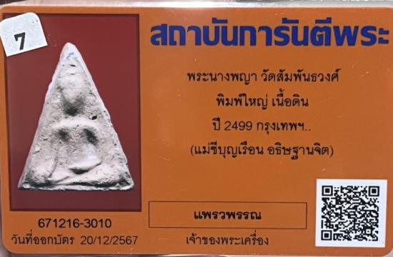 พระมงคลมหาลาภพระนางพญาพิมพ์ใหญ่เนื้อดินนิยมปี2499.คุณแม่บุญเรือน |