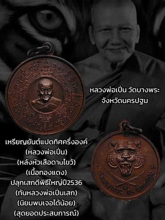(เคาะเดียวแดง) เหรียญยันต์แปดทิศหลัง หัวเสือดาบไขว้ หลวงพ่อเปิ่น วัดบางพระ จ.นครปฐม ปี2536 เนื้อทองแดง สภาพสวยกริบ |