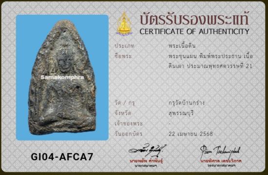 พระขุนแผน พิมพ์พระประธาน กรุวัดบ้านกร่าง จ.สุพรรณบุรี พร้อมบัตรรับรองสมาคมพระฯครับ ยังมีพระเครื่องสวยๆอีกหลายรายการกดที่ค้อนดูเพิ่มเติมได้เลยครับ |