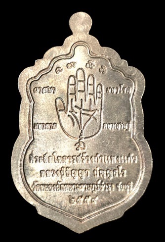 เหรียญเสมาหลังลายมือ ที่ระลึกสร้างกำแพงแก้ว หลวงปู่ปัญญา ปัญญธโร วัดหนองผักหนาม จ.ชลบุรี ปี 54 เนื้อเงิน 3 โค๊ต หมายเลข๕๑๗ พร้อมกล่องเดิม