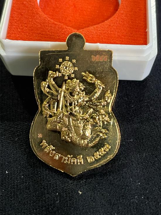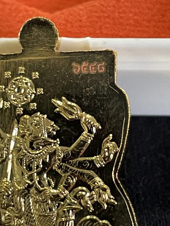 หลวงปู่ทวดพิมพ์เลื่อนสมณศักดิ์ หลังหนุมานหาวเป็นดาวเป็นเดือน รุ่นพลังสามัคคี ปี 2558 เนื้อกะหลั่ยทอง หมายเลข 6548 พร้อมกล่อง |