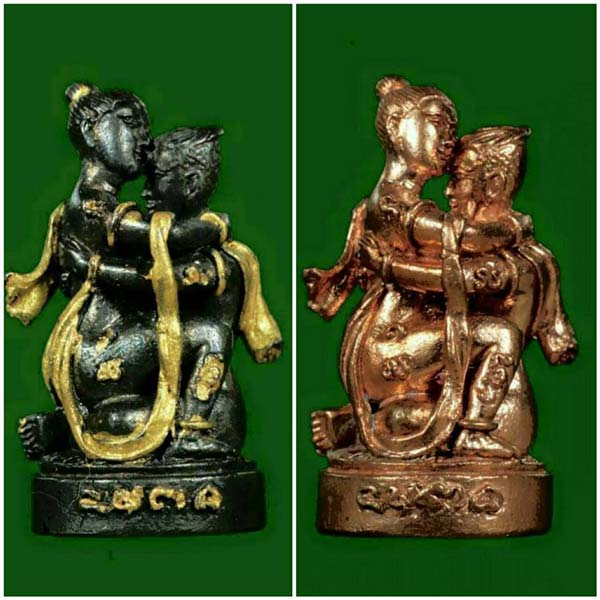 เคาะแรก..พญาอิ่นคู่ (รักมาก อุดผงว่านดอกทอง ผงนางอกแตก) ครูบาบุญมา สุ ภัทโท วัดสามัคคีธรรม จ.ลำปาง เนื้อสำริดโบราณปัดทอง |