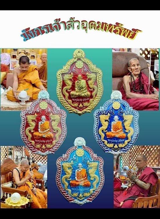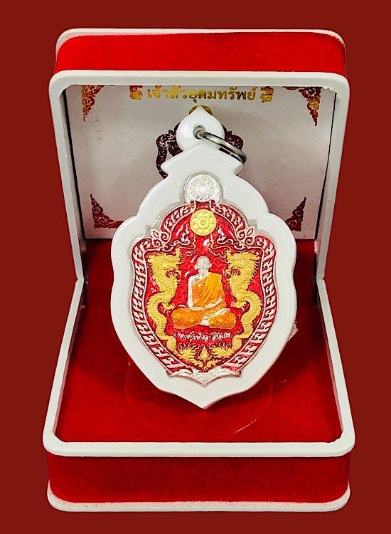หลวงปู่มหาศิลา เจ้าสัวอุดมทรัพย์ เนื้อเงินลงยาแดง มังกรชุบทอง จมูกโด่ง เลข 52 กล่องครบ ยุดต้นปี64 หมุนเวียนน้อย คัดสวยๆ