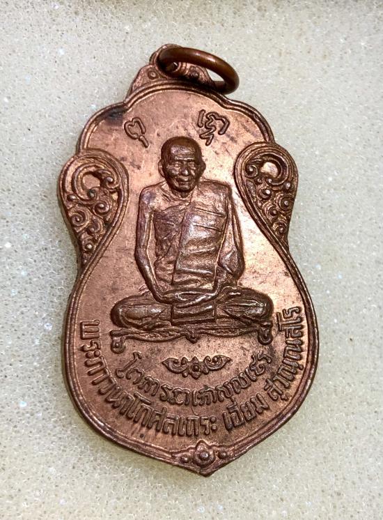 เหรียญหลวงปู่เอี่ยม วัดหนัง ปี 15 ออก วัดโคนอนจัดสร้าง เนื้อทองแดง หลังยันต์ 4 นิยม