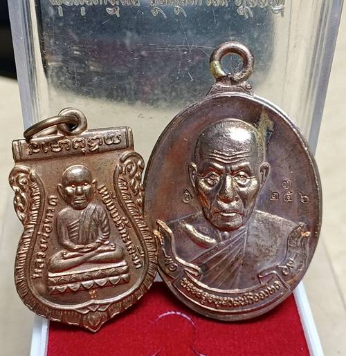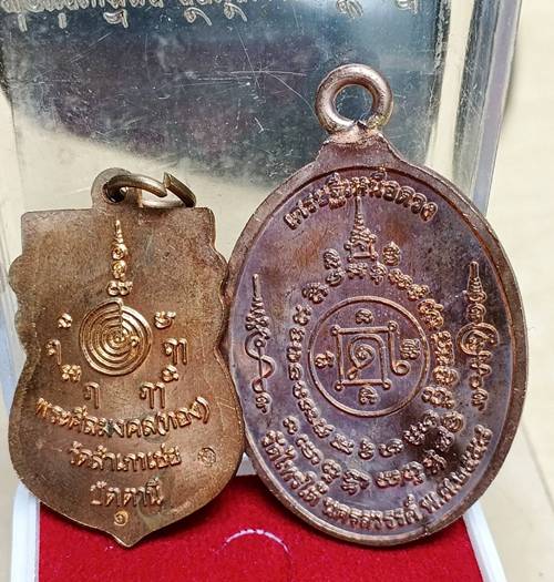 สองเหรียญ งามๆ เข้มหลัง พระอาจารย์ทอง วัดสำเภาเชย ปลุกเสก // หลวงพ่อเขียว วัดห้วยเงาะ ปลุกเสก