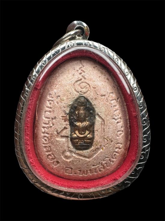 *พระปิดตาสารพัดดี หลังฝังปรก ฝังตะกรุด ติดจีวรเก่า ออกวัดบ้านคลอง ชลบุรี ปี 2538 มีกรอบแสตนเลท (เนื้อชมพู) |