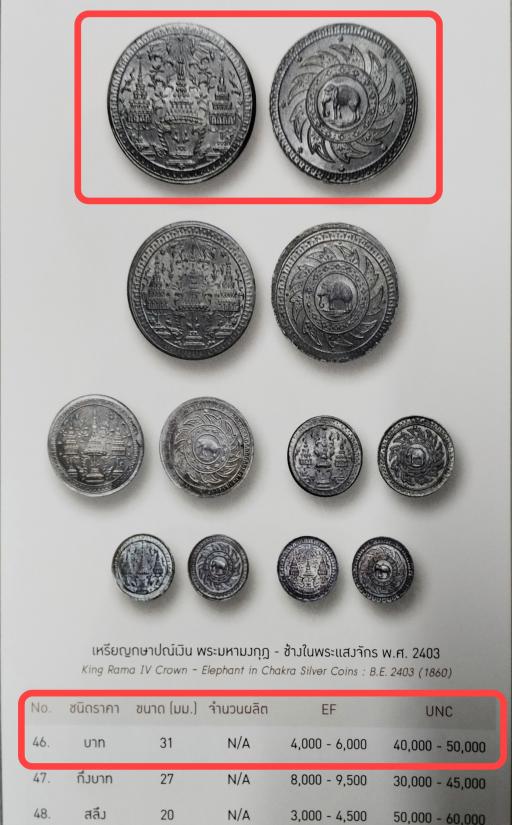 เหรียญหนึ่งบาท รัชกาลที่4 ช้างจักรมหาพิชัยมงกุฎ เนื้อเงิน สภาพน่ารัก |