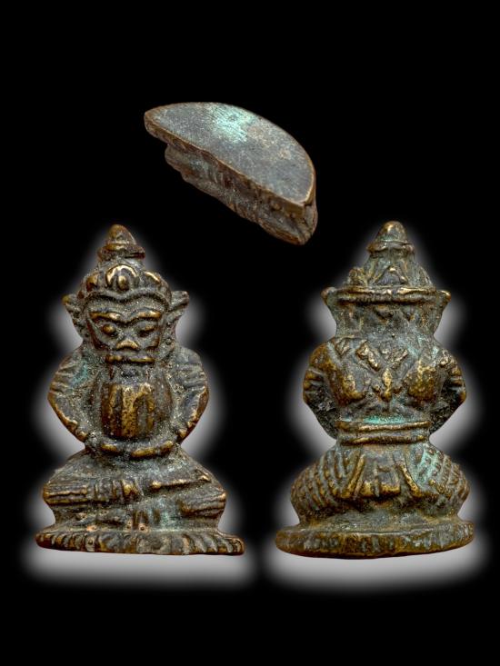 รูปหล่อเก่า พิมพ์โบราณ นั่งถือหม้อน้ำมนต์ สื่อถึงความเป็นสิริมงคล คุ้มครองป้องกันภัย