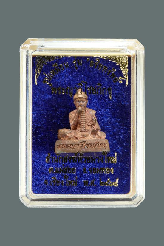 รูปหล่อลอยองค์ฐานเขียง พระญาวิไชยภิกขุ วัดห้วยม่วงใหม่ จ.เชียงใหม่ รุ่นอริยทรัพย์ เนื้อทองแดงเถื่อน รางวัลชนะเลิศงานประกวดพระเชียงใหม่ล่าสุด |