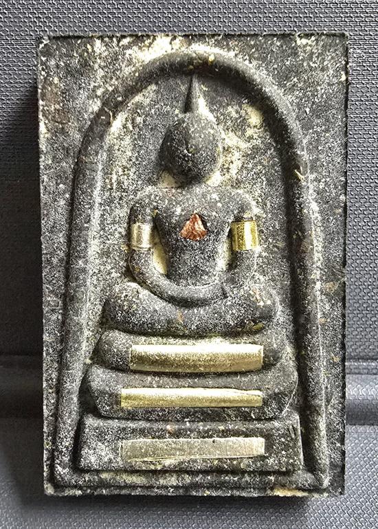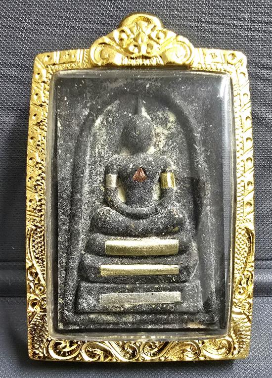 เนื้อดำพุทธคุณ คลุกผงว่านเรืองแสงเจ้าทรัพย์ ตระกรุดเงิน 3 ดอก กำไลเงิน-ทอง อกก้อนมวลสาร หลังตระกรุดเงิน 2 ดอก