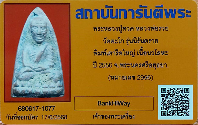 รายละเอียด (กรรมการเลขไทย๒๙๙๖) หลวงพ่อรวยปลุกเสกแท้ๆ มาพร้อมบัตรรับรองครับ