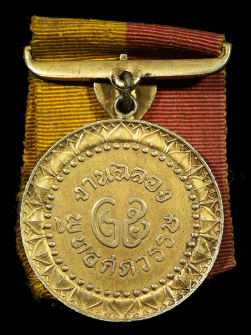 เหรียญธรรมจักร 25ศตวรรษ แจกกรรมการ เนื้อเงินกะไหล่ทอง แถบผ้าแพร
