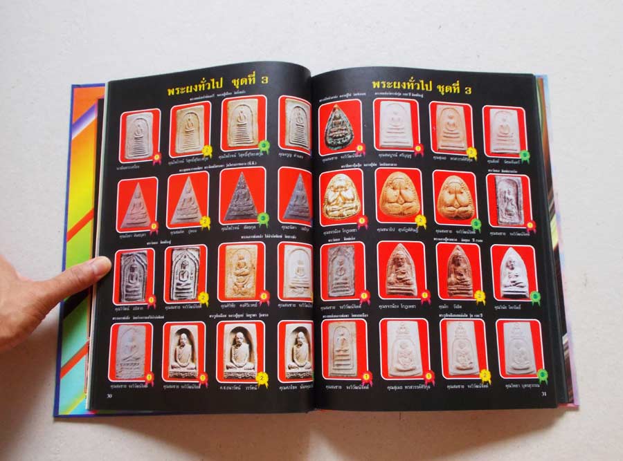 หนังสือ ประมวลภาพนิทรรศการ การอนุรักษ์พระบูชา พระเครื่อง เหรียญพระคณาจารย์และเหรียญที่ระลึก 20 ส.ค. 2543 จัดโดย กรมจเรทหารอากาศ ร่วมกับ สมาคมผู้นิยมพระเครื่องพระบูชาไทย ณ ห้องคอนเวนชั่นเซนเตอร์ ชั้น 8 ห้างสรรพสินค้าบางลำภู สาขา งามวงศ์วาน จ.นนทบุรี ปกแข็ง ขอบหนา