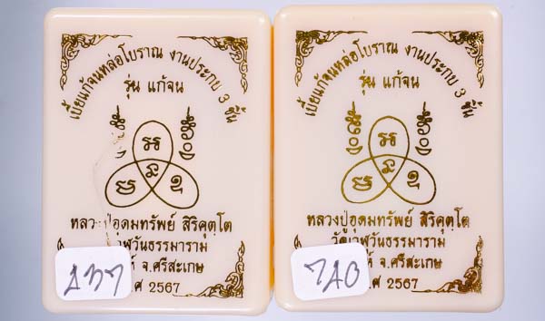*ทีเดียว 2 ลูก 2 เนื้อ หลวงปู่มหาศิลาร่วมเศก เบี้ยแก้จนหล่อโบราณ ประกบ3ชิ้น อุดมวลสาร หลวงปู่อุดมทรัพย์ สิริคุตโต วัดเวฬุวันธรรมาราม สวยมาก เคาะเดียวแดง* |