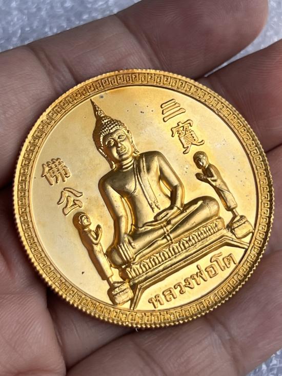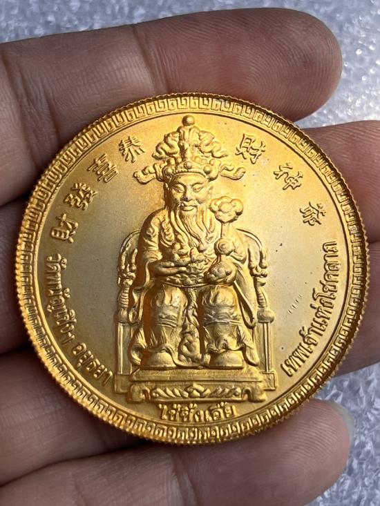 เหรียญหลวงพ่อโต วัดพนัญเชิง อยุธยา หลังไช้ชิ้งเอี้ย เทพเจ้าแห่งโชคลาภ สวยเดิม