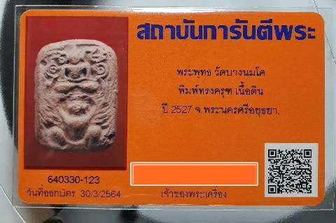 พระพุทธ วัดบางนมโค พิมพ์ทรงครุฑ เนื้อดิน พร้อมบัตรรับรอง