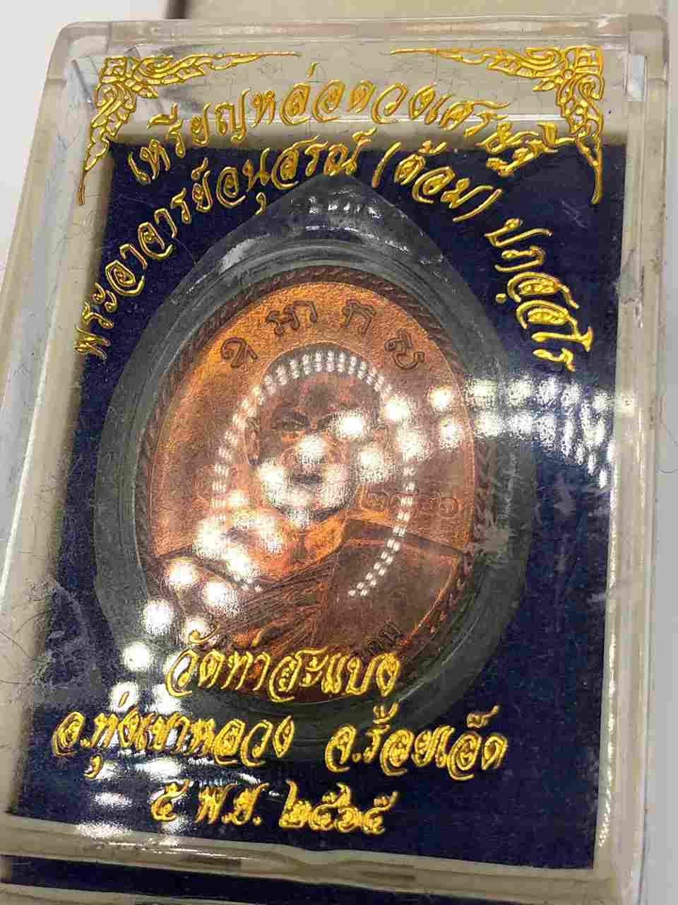 เหรียญดวงเศรษฐี พระอาจารย์ต้อม วัดท่าสะแบง พร้อมกล่อง ผิวแดงๆ |