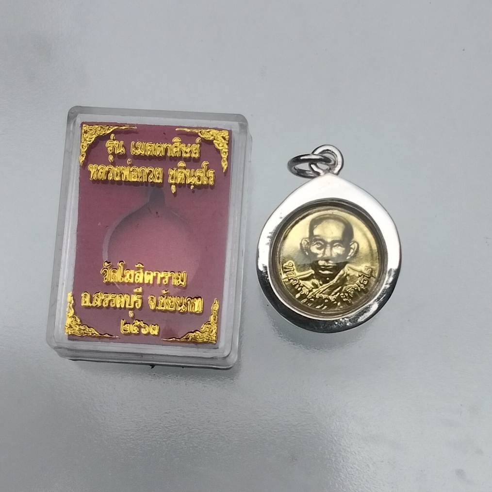 วัดใจ หลวงพ่อกวย เหรียญทานบารมี รุ่นเมตตาศิษย์ เลี่ยมเงินแท้ 92.5% |