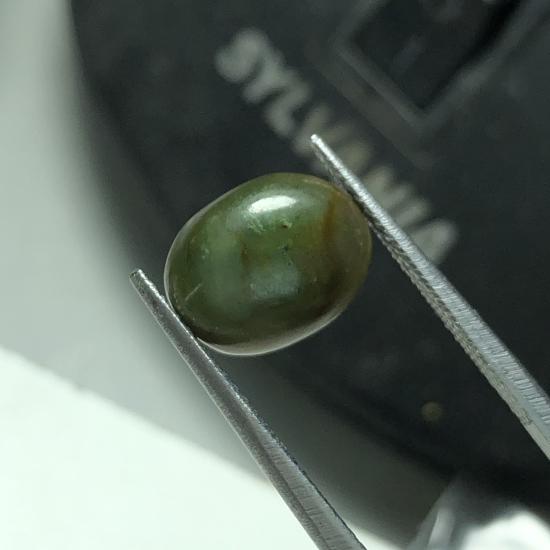 หยกทราวดีพันปี แกะจากหัวแหวนทองคำ หากประมูลไปทำเครื่องประดับแจ้งช่างให้ปัดหน้าพลอยใหม่จะกลับมาเงางามขึ้น |