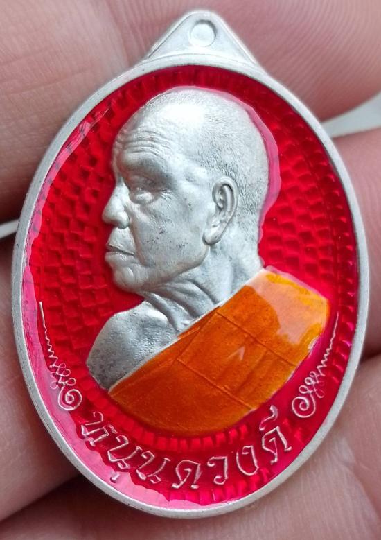 เหรียญหนุนดวงดี หลวงพ่อสุนันท์ วัดเทพปูรณาราม จังหวัดขอนแก่น ปี 67 หลังยันต์เกราะเพชร เนื้อเงินลงยาแดง (มีรอยจาร)