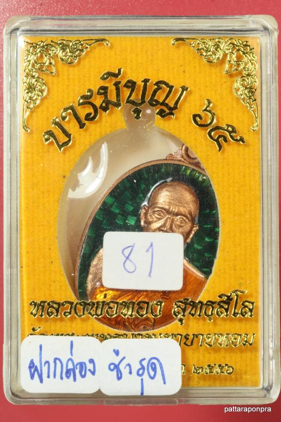 เหรียญหลวงพ่อทอง รุ่นบารมี ๖๕ ปี 2556 เนื้อทองแดงลงยาสีเขียว หมายเลข 81 แยกจากชุดกรรมการ ฝากล่องชำรุด |