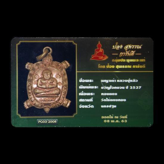 เหรียญพญาเต่าเรือน รุ่น ขวัญใจคนจน เนื้อทองแดง หลวงปู่หลิว วัดไร่แตงทอง มีบัตรรับรอง แดงเคาะแรก |