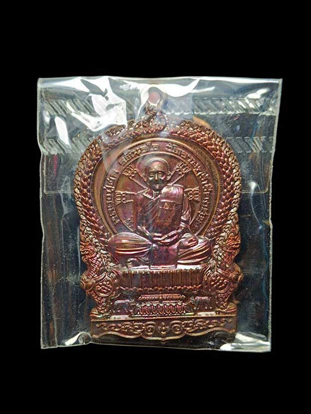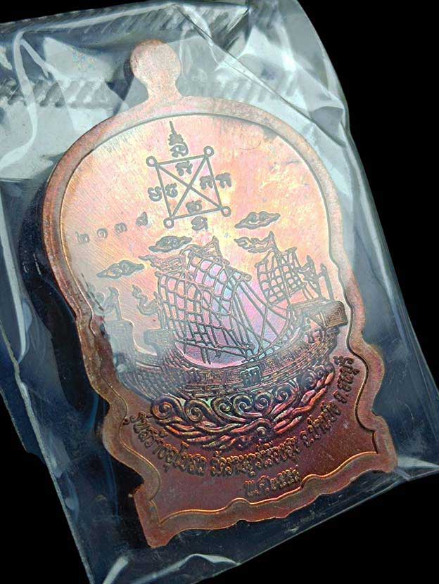 เหรียญนั่งพานสำเภาทอง หลวงปู่ฮก วัดราษฏร์เรืองสุข จ.ชลบุรี ปี 2558 (เนื้อทองแดงรมมันปู) ตอกโค้ต หมายเลข 2138 ซีลเดิม พร้อมกล่อง ผิวสวยๆ |
