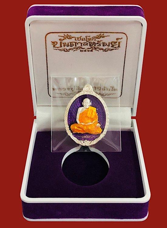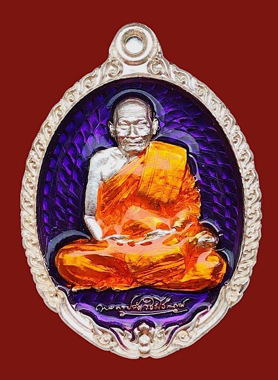 หลวงปู่มหาศิลา เปิดโลก เนื้อเงินลงยาม่วง จมูกโด่ง เลขสวย 54= 9 กล่องเดิม หมุนเวียนน้อยมาก เหรียญจริงสวยแชมป์ๆ