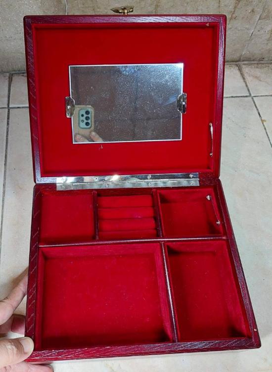 ***วัดใจ***กล่องเครื่องประดับเก่าไม้เนื้อแข็ง งานหัตถกรรมไม้มะฮอกกานี