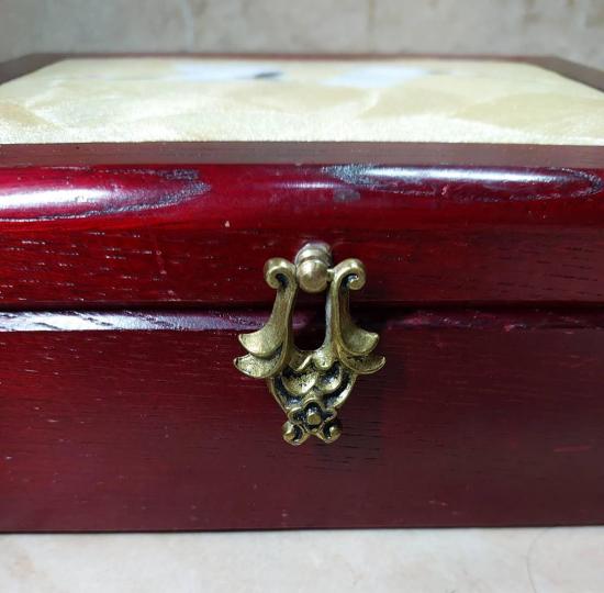 ชื่อพระเครื่อง ***วัดใจ***กล่องเครื่องประดับเก่าไม้เนื้อแข็ง งานหัตถกรรมไม้มะฮอกกานี