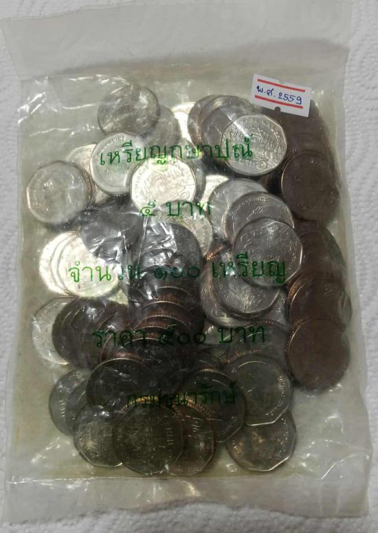 เหรียญ 5 บาท หมุนเวียน พ.ศ.2559 ปีสวรรคตของ รัชกาลที่ 9 จำนวน 1 ถุง มี 100 เหรียญ ไม่ผ่านการใช้งาน UNC ครับ |
