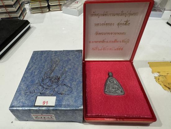 หลวงพ่อทอง วัดบ้านไร่ เหรียญหล่อโบราณจอบใหญ่ (รุ่นแรก) ปี2555 เนื้อตะกั่ว นำฤกษ์ no.91 มีกล่องครบ